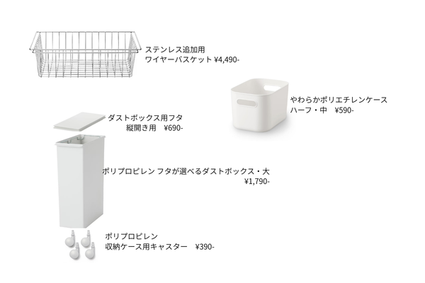 収納に使っているアイテムと価格は下の画像にまとめました。