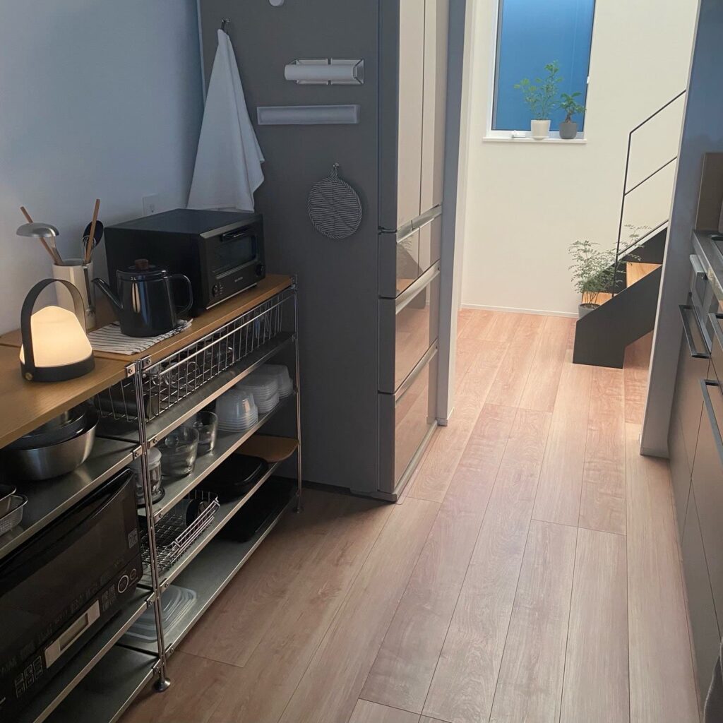 ハウスメーカー備え付けのキッチン収納だと20万円以上するのが普通なので、10万円以内で理想のキッチン収納が作れたのも家計には大助かりでした。