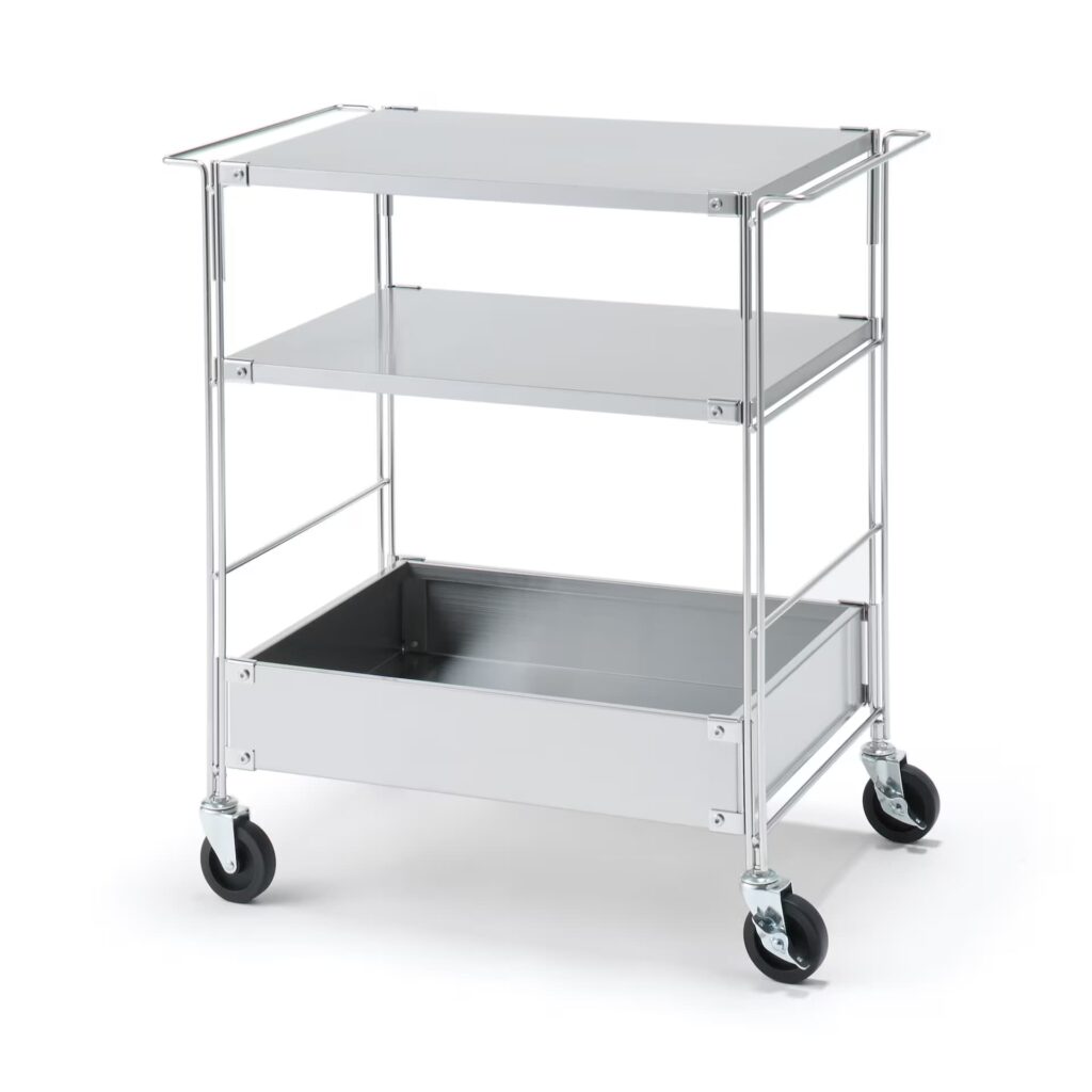 無印良品のステンレスユニットシェルフワゴンセットをキッチンワゴンとして使っています。